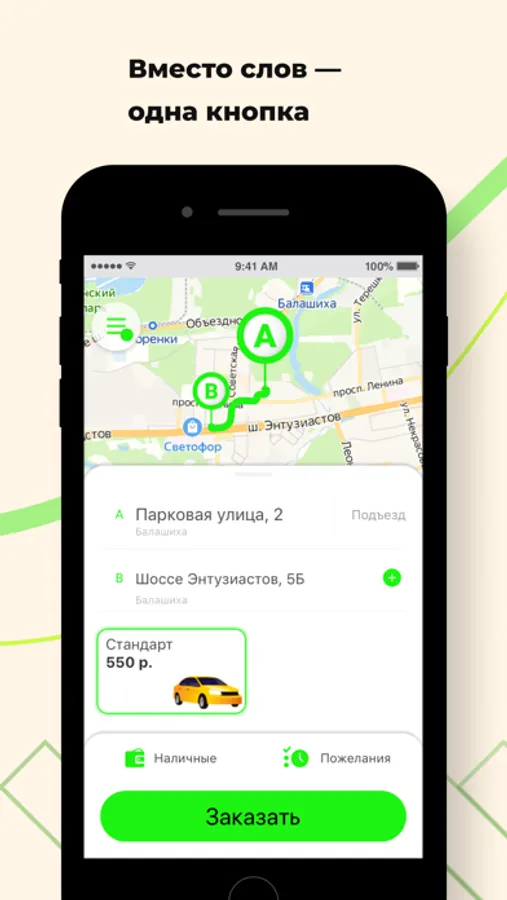 Закажите Такси Яблочко в городах Москва, Железнодорожный, Реутов, Балашиха, Люберцы, Некрасовка, Электросталь, Электроугли и в их окрестностях через приложение. Это в 3 раза быстрее, чем по телефону! Между желанием доехать до нужного места и поиском автомобиля — пара секунд.