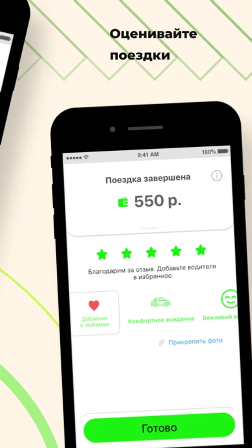 Поставьте оценку водителю, напишите отзыв или выберите реакцию из готовых шаблонов. Прикрепите фотографию к отзыву.