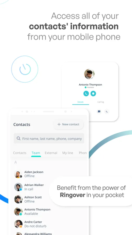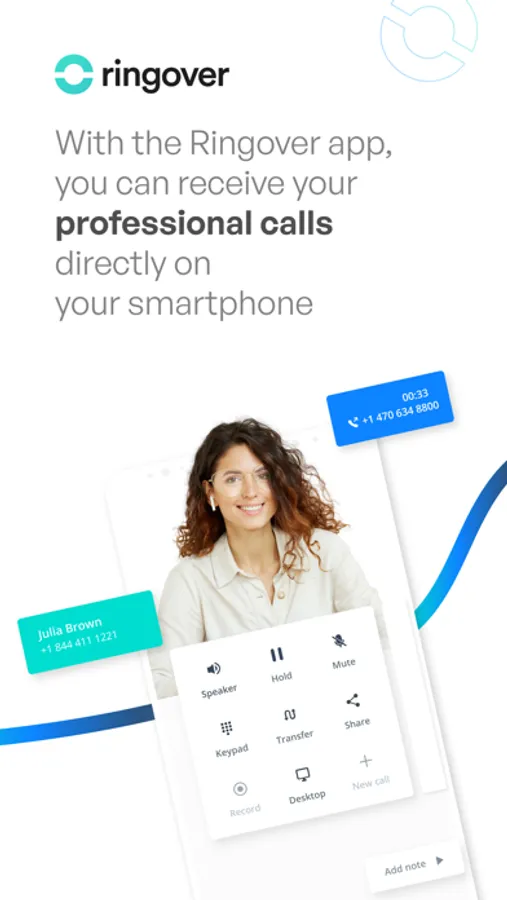 Note: an internet or 3G/4G connection as well as a RingOver account are necessary to use this application.