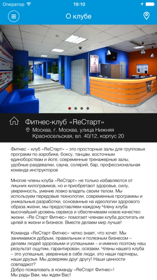Приложение предназначено для клиентов фитнес клуба ReСтарт.