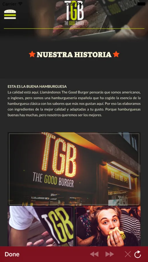 The Good Burger ofrece una experiencia gastronómica diferente, aquellos que quieren disfrutar de una hamburguesa de calidad, en un ambiente moderno, trendy, menos formal y a un precio más asequible harán de TGB su hamburguesería de referencia.