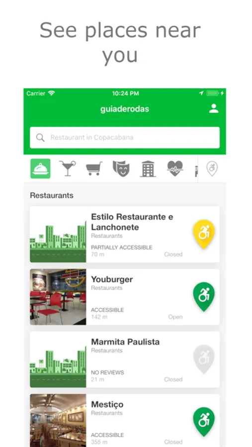 Even if you don't have restricted mobility, you can use Wheelguide for rating places. You will be helping millions of people who want to go somewhere, but don't know if they'll be able to get inside, such as wheelchair users.
