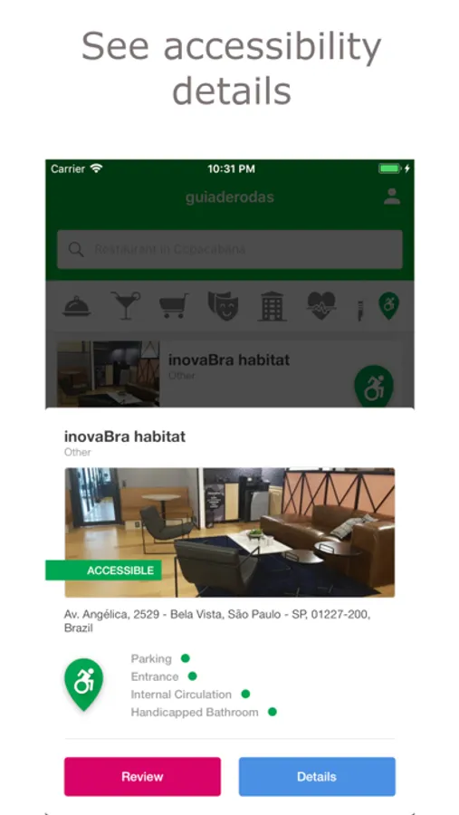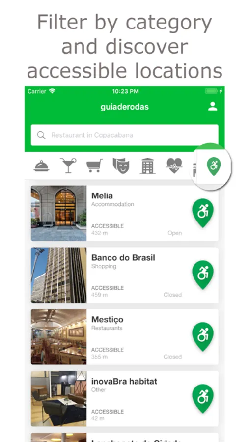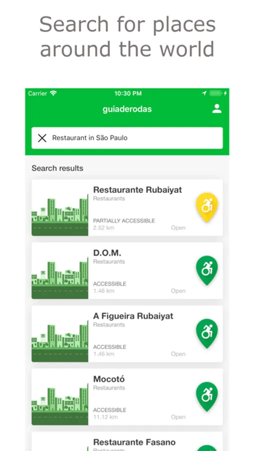 Use Wheelguide for rating the accessibility of venues and search for places that have been rated.