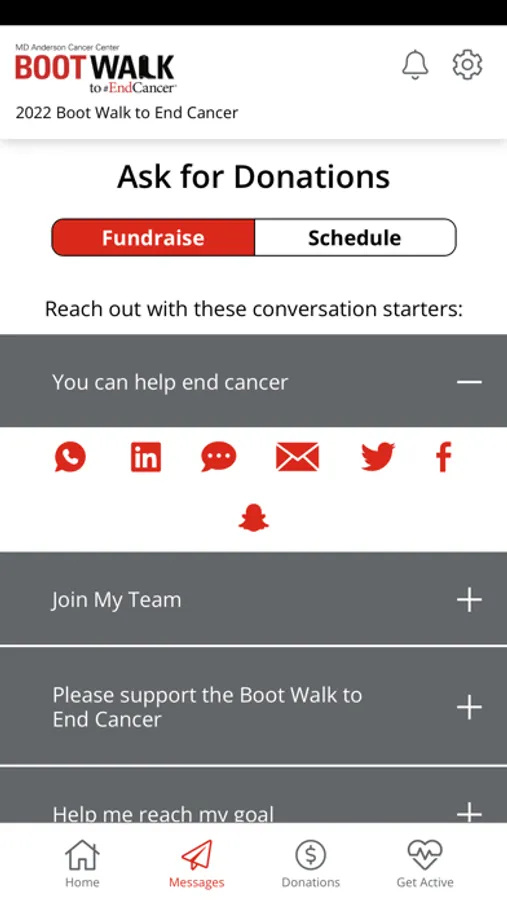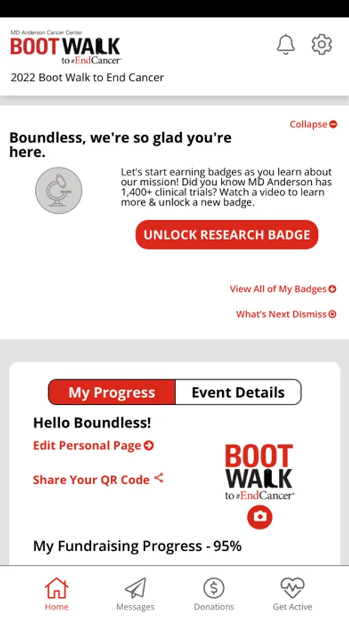 Do your fundraising on the go with MD Anderson Cancer Center’s Boot Walk to End Cancer application. Update your page, send emails, and check your progress – all from the palm of your hand. Boot Walk application is a great tool to track your fundraising progress, connect to Apple HealthKit to track your physical activity – and to keep current on all Boot Walk news!