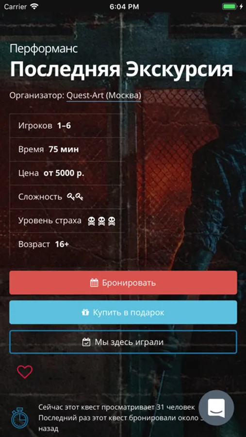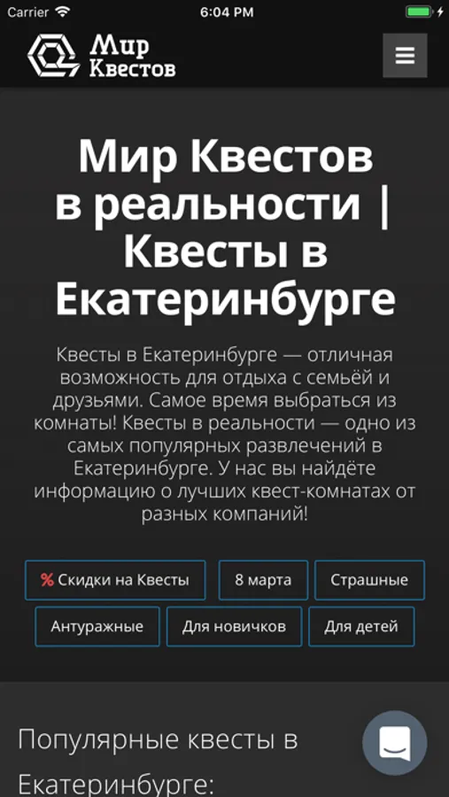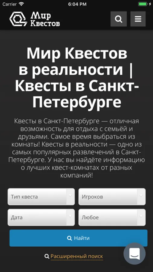 Приложение “Мир квестов” позволит вам получить легкий доступ к каталогу квестов в реальности. Вы сможете выбрать квест для себя и своих друзей по жанру и категории, учитывая станцию метро, а также забронировать его нажатием всего одной кнопки. Не нужно ждать в мобильном браузере загрузки каждой новой страницы, ведь все грузится очень быстро!