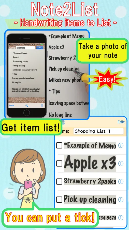 Just taking a photo of your handwriting note, you can get shopping list, todo list, etc.