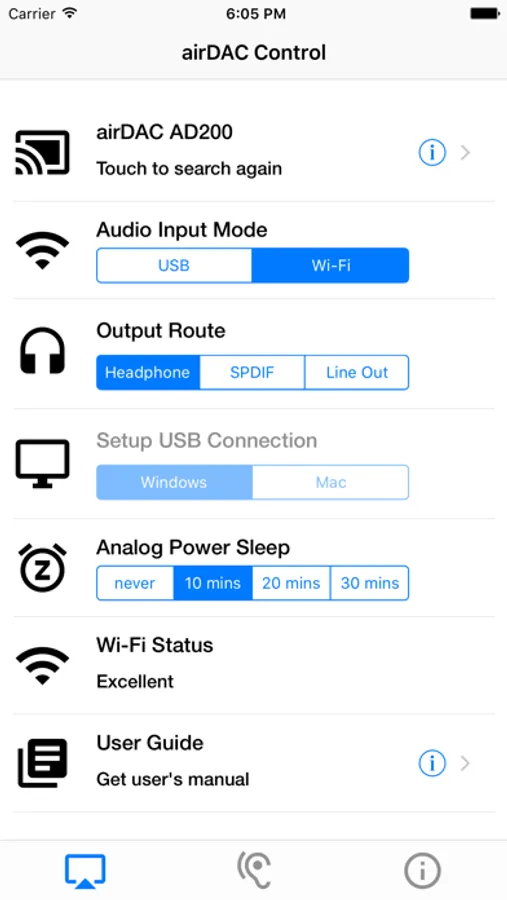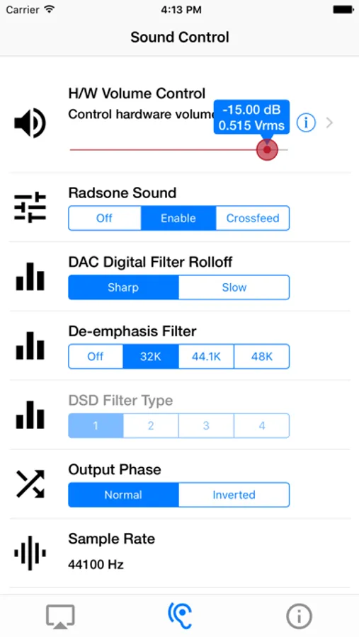 - Detail sound control for airDAC such as Radsone sound, H/W volume, Audio input, Output route control and many others.