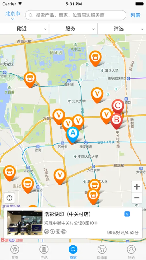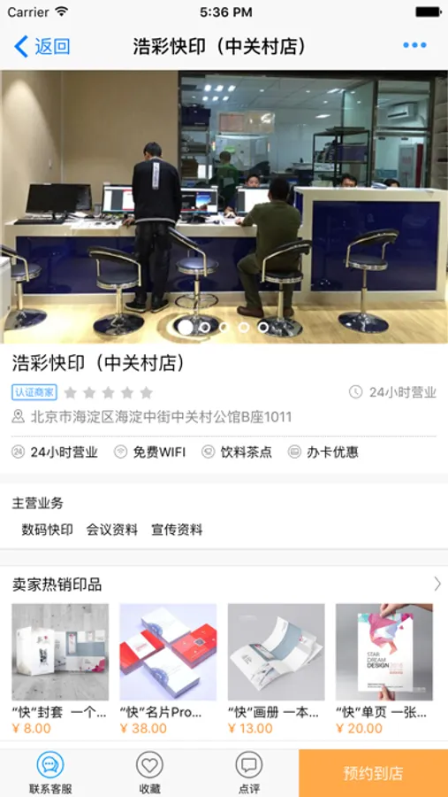 用户可以按照地图浏览、条件组合查询等多种方式选择商家及印刷品,还可以对商家做口碑点评,通过APP和网站向商家预约进店,在线下单,享受超低价格优惠。