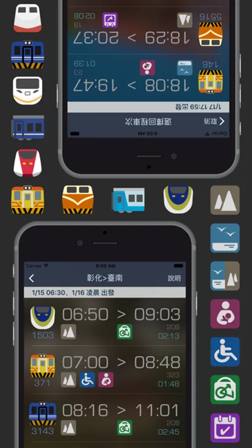 易讀圖示 - 易讀的圖形化車種、山海線、無障礙等詳細資訊
