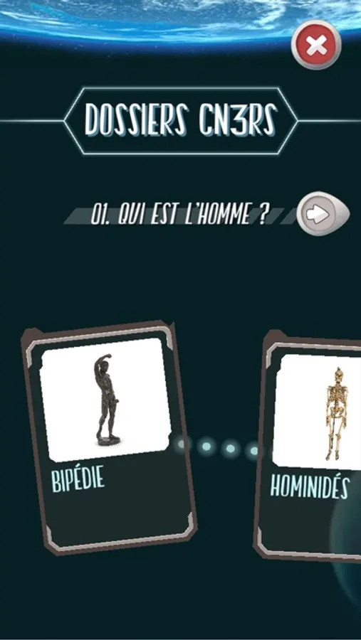 Aide Allen à percer les mystères de l’être humain dans son enquête au Musée de l’Homme ! Assiste-le dans ses recherches passionnantes sur ton espèce, sur les origines de l’Homme, ses richesses culturelles et ses rapports à l’environnement. Tu pourras comparer ton crâne d’Homo sapiens à un véritable crâne de Néandertalien, faire du feu avec les techniques des Hommes préhistoriques, ou jouer au jeu des différences sur un car sénégalais. À travers différents jeux avec des œuvres, des fossiles et autres objets exposés dans le Musée, amuse-toi à parcourir la Galerie de l’Homme en compagnie d’un extra-terrestre hors du commun !