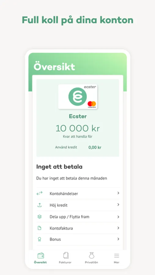 Ecster ger dig möjlighet att finansiera allt ifrån de små vardagsinköpen till de lite större investeringarna. Med hjälp av Ecsters app har du alltid en snabb överblick nära till hands.