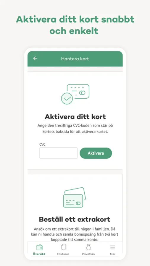 - Aktivera ditt kort (kortet måste aktiveras innan du kan börja använda det)