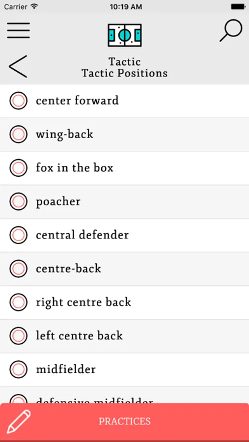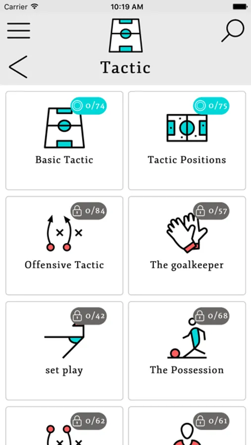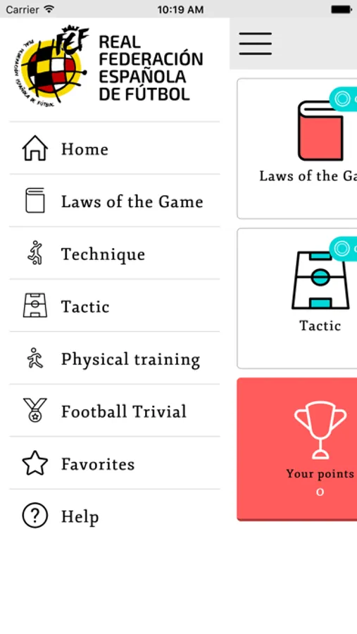 La aplicación consta de tres niveles (Basic, Advance y Pro) divididos en 4 temas (Reglas de Juego, Técnica, Táctica y preparación Física/Medicina deportiva) y 22 subtemas (11vs11). Cada subtema consta de vocabulario, definiciones, frases, ejercicios (match the Word, Skillwise, audio) y juegos (hangman y trivial).