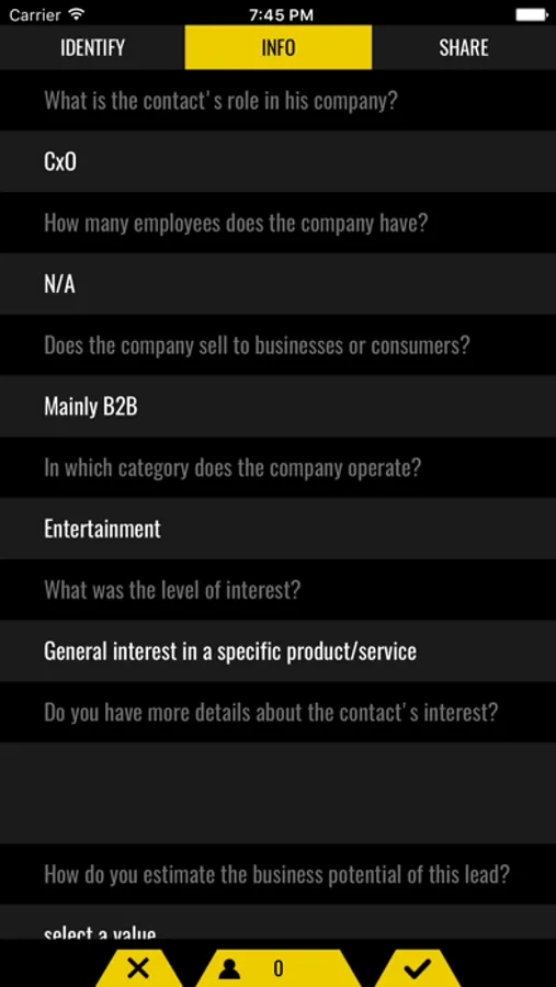 At the event, the exhibitor simply scans his visitor, selects promo material to share and adds valuable info via his tailored questions.