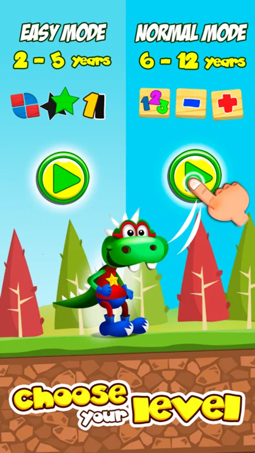 Here you go! With “Dino Tim: Learning colors and shapes and my first words” children in preschool age (3, 4, 5 and 6 years old) and primary school will learn with no effort while having fun.