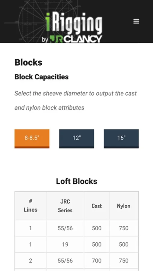 iRigging Tools provides tools and reference data for many areas of rigging, including wire rope, battens, arbors, sheaves, stage ropes, motors, curtains, and fleet angles.