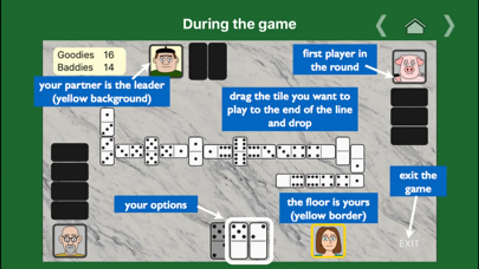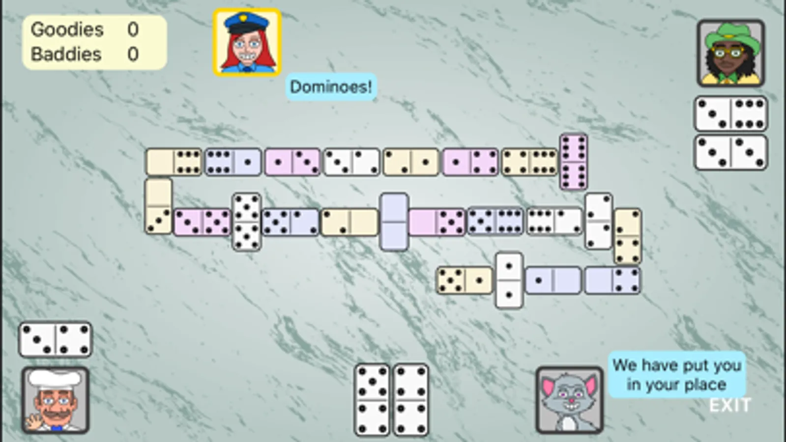 ”Partnership Dominoes" is a conversion of the dominoes game described above. At this moment, the individual game is only available, although you can choose your partner and rivals among the available bots. To do this, push the avatar you want to change in the configuration screen.