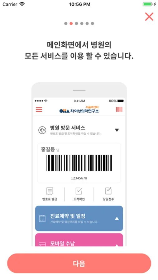 모바일 번호표 발권, 모바일 도착확인, 모바일 진료카드, 모바일 진료 일정안내 등의