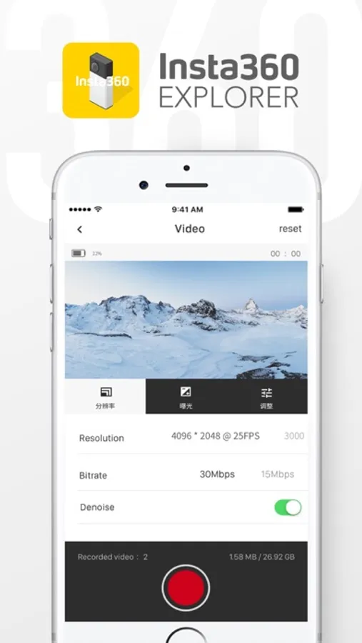 Insta360 4K beta is the worlds’s first all-in-one 4K VR camera, which is capable of capturing 4/3/2K panoramic images and videos. Used with Insta360 Explorer, the camera support remote controlling, realtime previewing, parameters adjusting, one-click recording, on-click reviewing, on-click download etc. It supports both English and Chinese settings.