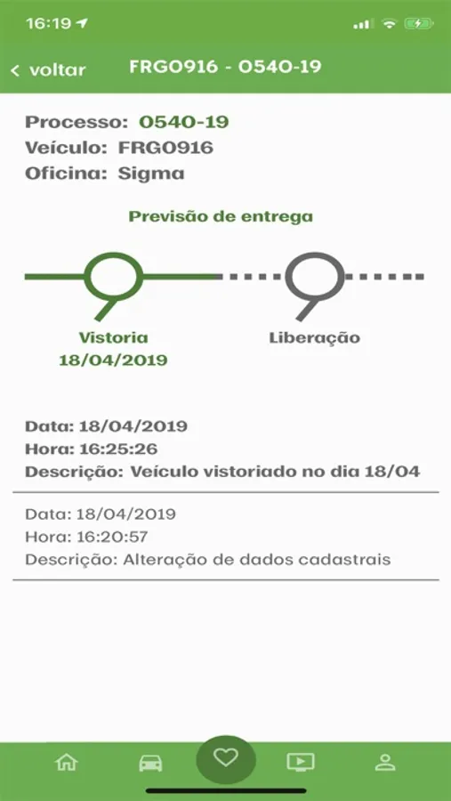 Acompanhe todo o reparo em tempo real na linha do tempo de reparo e acompanhe o histórico com mensagens e imagens de seu carro sendo reparado.