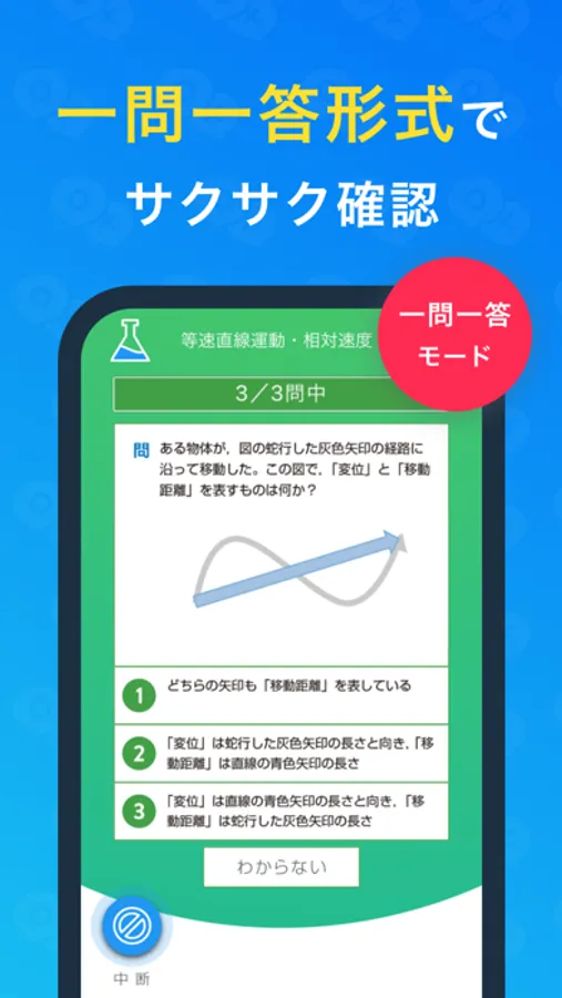 ・3択や4択で手軽に基礎事項を確認できる「一問一答モード」