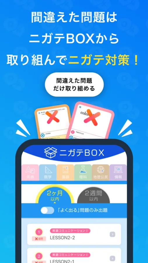 ・テスト範囲を設定して、テスト範囲だけを集中対策できる