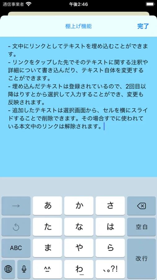 Shelved Text is a memo application that adds a "shelving feature" to embed link text that can be changed later.