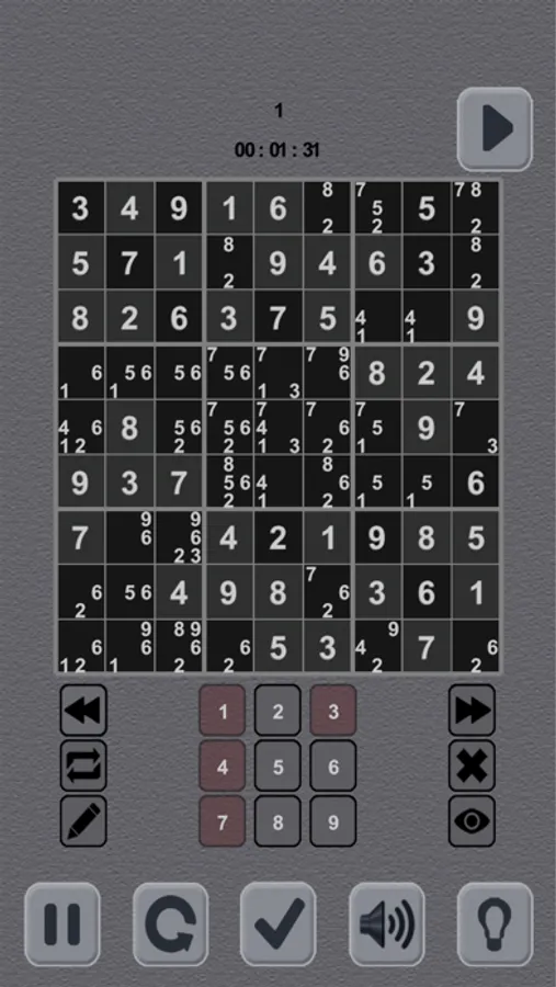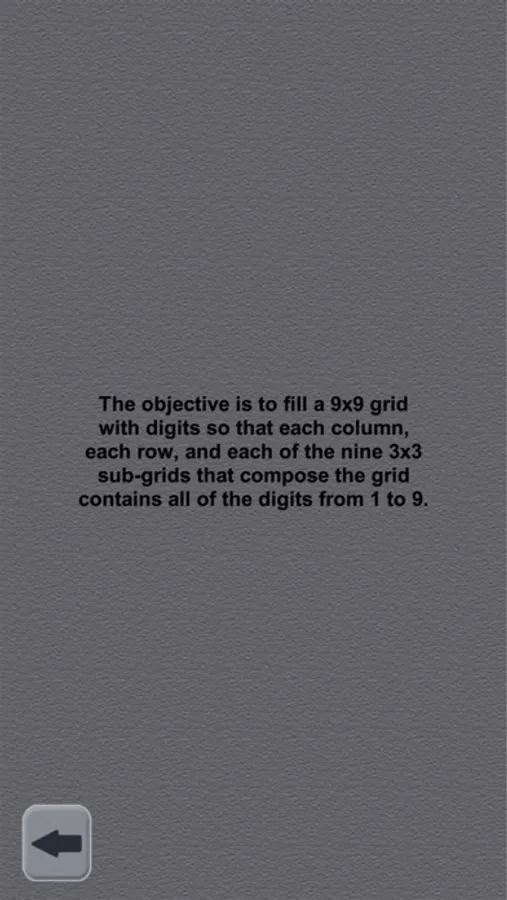 The objective is to fill a 9x9 grid with digits so that each column, each row, and each of the nine 3?3 sub-grids that compose the grid (also called "boxes", "blocks", "regions", or "sub-