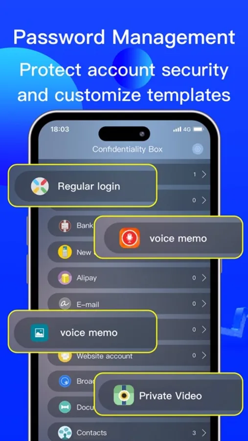 In the history of the safest, most powerful, the most efficient, the content of the most abundant memory device.In reality there are too many things to memory, often also didn't remember to forget, how to do?Have a secret box I help you, infinite memory, data is not lost forever.Secret box is a standalone application, using military-grade encryption technology (AES - 256), for all the data is encrypted, effectively prevent hackers, peeping Tom, as well as the bad person by heart.A secret box provides the following features, let you choose a secret box never regret.1. Data security - reliable, stand-alone applications, not connected to the others can't peep.- confidentiality box of all data is encrypted, setup provides data self-destruction, and instant locking function, even if your phone is lost, others can not see your data.- the built-in password generator, you had your pick 1-32 bit random password, provide quick copy function.- backup functions provide iTunes, wifi, ripped synchronization and backup.The backup data is processed (level of military security encryption) encryption AES - 256.2. Confidentiality box memory ability.- provide a powerful voice, voice broadcast memory.- provide photo storage, amplification and browsing.- word memory function, unlimited text, no matter how many words can remember.- password memory, including speech password, gestures, text password.- date memory, built-in calendar, your choice of date.- provide bank card scan memory, without you having to enter, as long as gently sweep can remember.- digital memory function, any complex Numbers, can always remember.3. The built-in camera, store photos, video - mass of photos, video storage, video recording.Backup at any time.4. High efficiency, without wasting time.- built-in powerful search and quick positioning function.Writing too much, too much trouble, use the recording or taking pictures.- the password is too long too annoying, can use graphical password.5. The personalized design - confidentiality box provides native iPhone interface, built-in template, can also design your own template.- templates can exchange data between mobile copy.Template can edit, move, add, delete, modify.- each element of the interface, can be in the skin, change the name.- more than 400 commonly used built-in ICONS, arbitrary choice.- find forget, change - forget trouble.A secret box function far more than you know these.