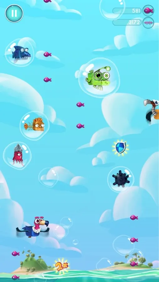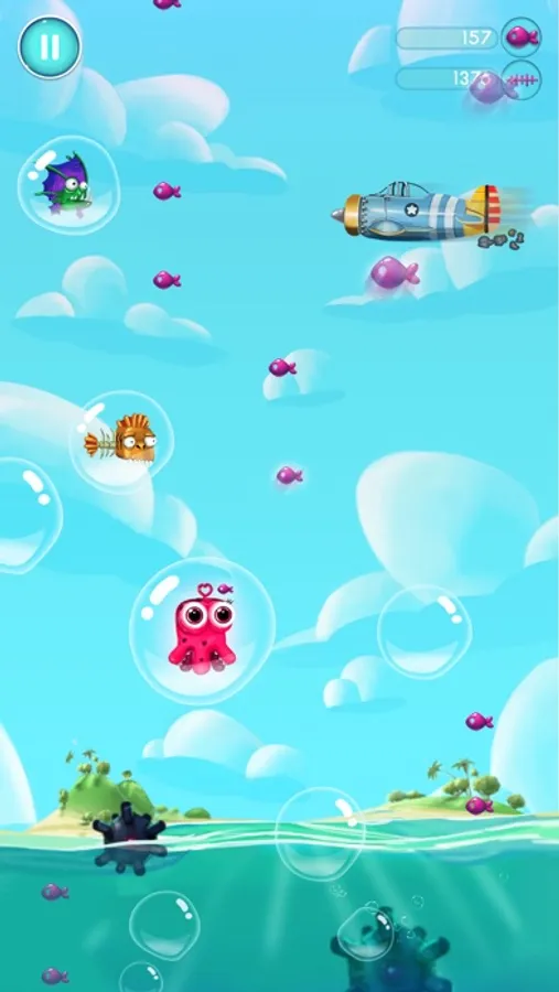 Our curious characters want to see blue sky and white cloud-drift. Help your cutest, friendly character to get out from the depths of ocean to fly through the clouds. Avoid all the obstacles, like enemy spiky fishes, angry airplanes, funny birds and get the power-ups, earn the highest score and enjoy!