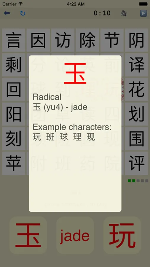 Knowing the KangXi radicals will help you memorize and understand the Chinese writing and how the characters are composed. In this game you can teach yourself to associate the right radicals with three thousand most common characters.