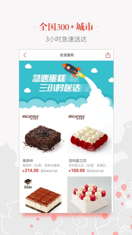 【全国配送】真正实现随时随地订蛋糕,支持全国300+城市异地订购,更有超炫酷3小时送达服务。