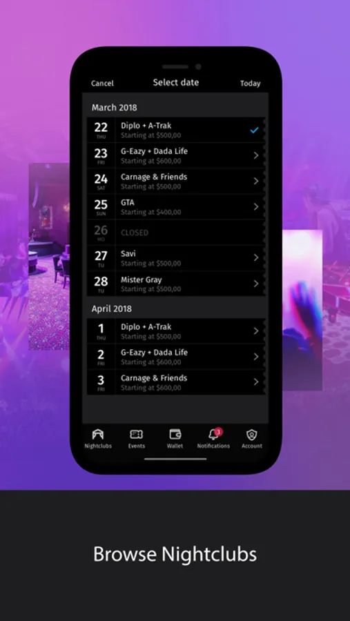 + Services: Purchase tickets, table services and or transfer your ticket, table or events before the night begins. Invite friends or add and remove friends from table anytime.