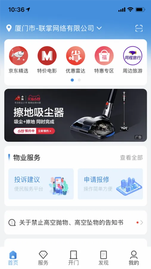 联掌门户APP由福建很多卡网络科技有限公司自主研发,是一款服务于小区居民日常生活的生活服务类APP,联掌门户APP可提供多种开门、物业服务、一站式直达O2O居家生活服务、线上购物等多领域生活类服务。