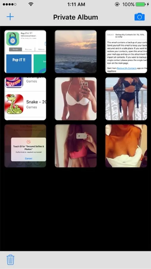 Import photos from your Camera Roll, personal albums to a secure vault. All imported files will be kept safe behind your Finger print or PIN. If your device goes missing, no one can go in the App without your Finger print or Passcode.