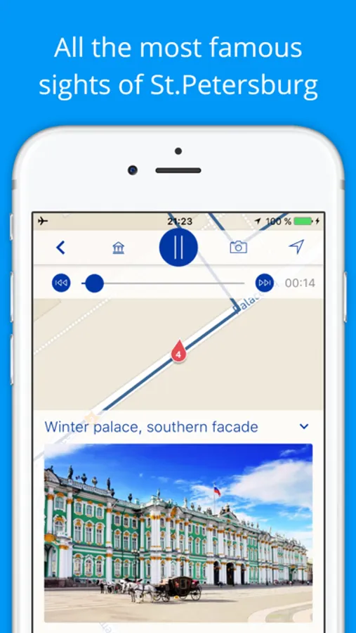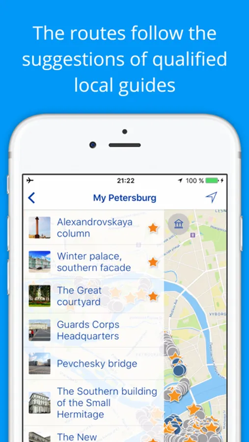 The My St. Petersburg audio-guide is your personal OFFLINE GUIDE to the most popular sights in Saint Petersburg. It's packed with insightful and entertaining information about Petersburg's history, local legends, and the most interesting locations.