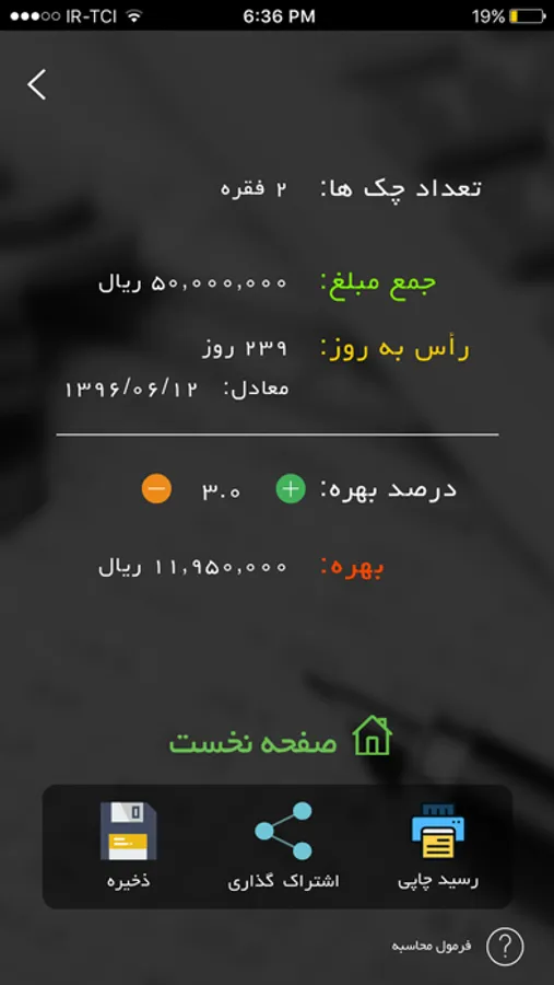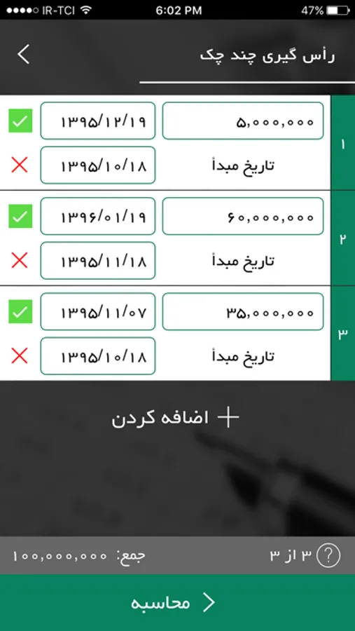 - قابلیت پیدا کردن رأس چندین چک به همراه محاسبه سود با درصد دلخواه کاربر.
