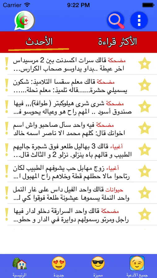 دائما ما تجد الجزائريون مرحون ويحبون الضحك و لذلك تجد العديد من النكت الجزائرية المنتشرة في بلادنا و هي مميزة و مضحكة جدا جدا ، سوف أعرض عليكم بعض النكت التي تجعلكم تموتون من الضحك .