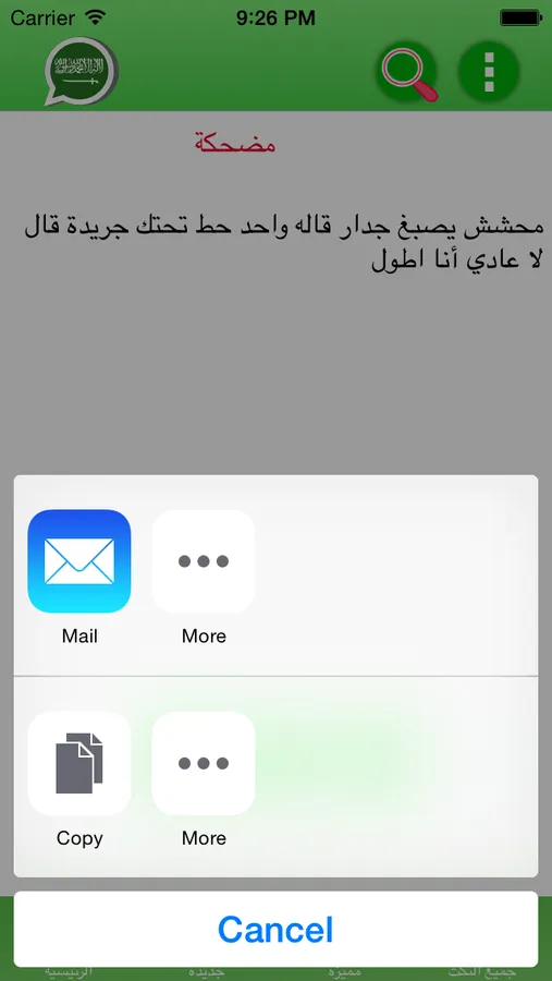 يمكنك مشاركة النكت عبر واتس اب وفيس بوك وتغرد فيها على تويتر بسهولة