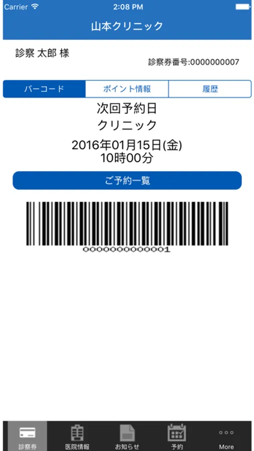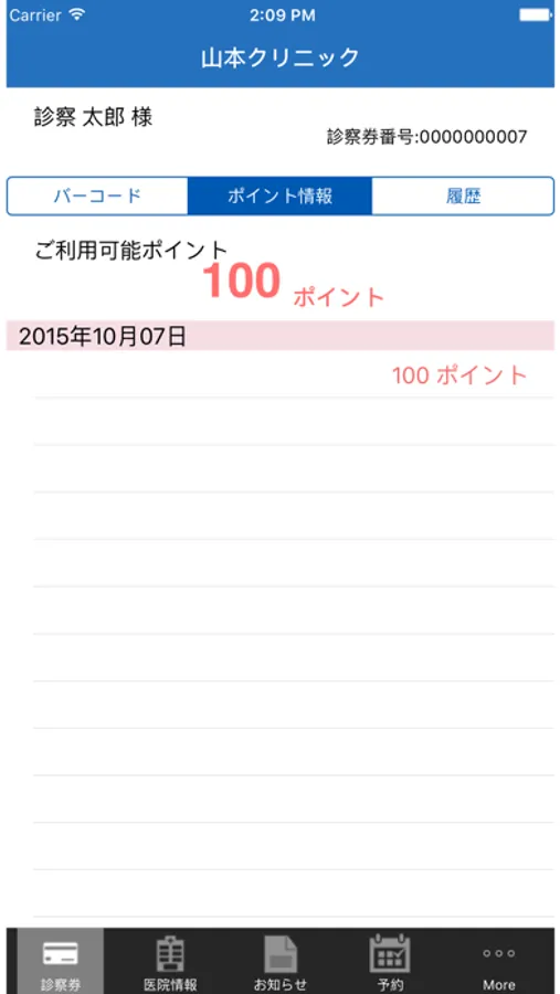 診察券に代わり、自動チェックイン機能、次回来院予定日時や履歴、ポイント情報の閲覧と、お得なキャンペーン情報もタイムリーにお届けします。