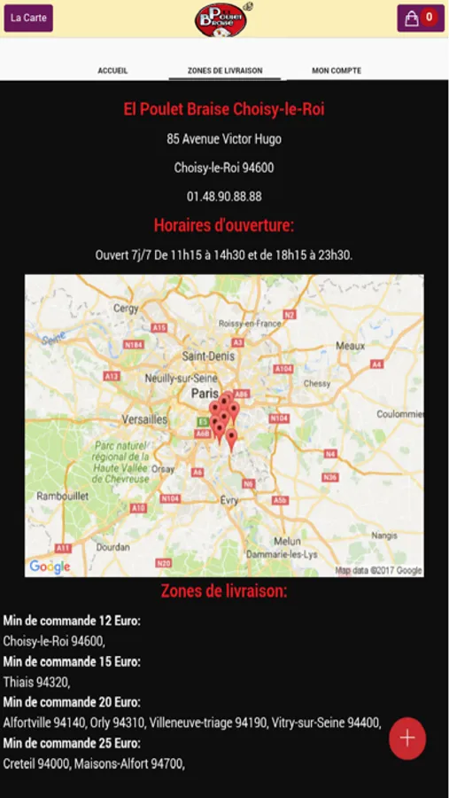 L'application Iphone/Ipad de El Poulet Braise vous permet de commander en ligne ou par téléphone via votre application. Vous pouvez consulter notre carte et choisir vos produits.