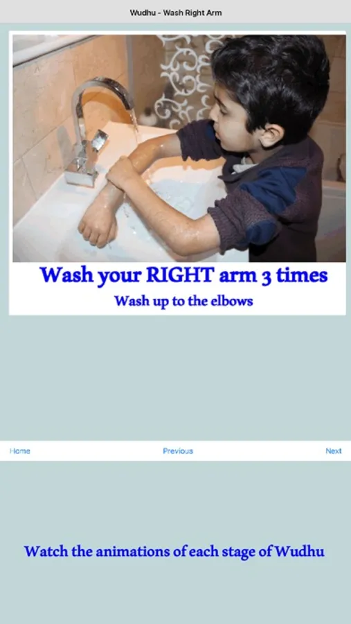 Learn how to perform the ablution, the Wudhu, by watching the animation of each stage of Wudhu