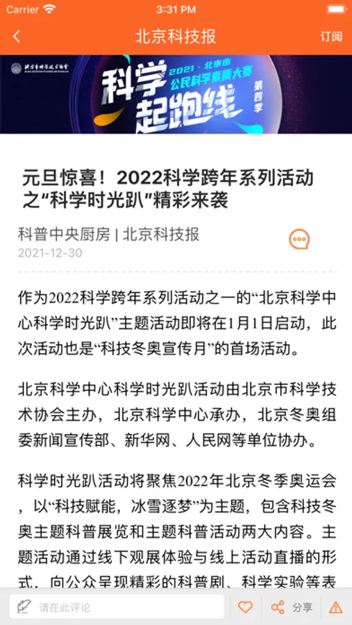 北京科技报App,围绕医、食、住、行、用、玩,提供最新鲜最前沿的科技资讯、推荐最具特色的科普场馆、科普活动,为公众提供一个移动端的科普资讯学习、沟通、交流平台。