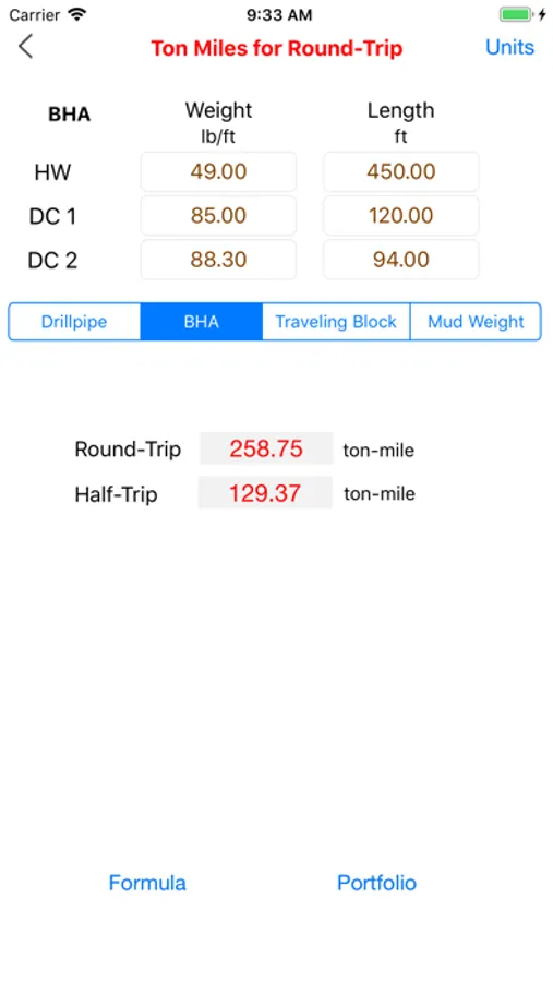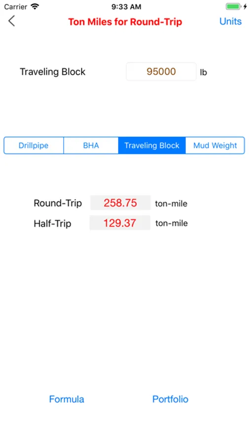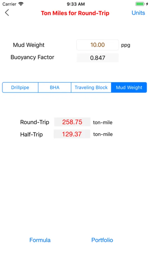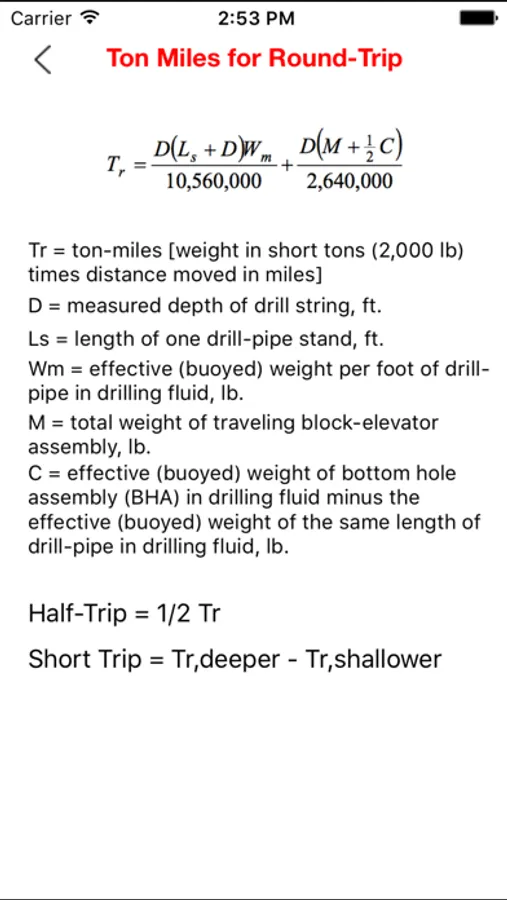 This application provides the ton miles calculations for round-trip operations in the oil field services.