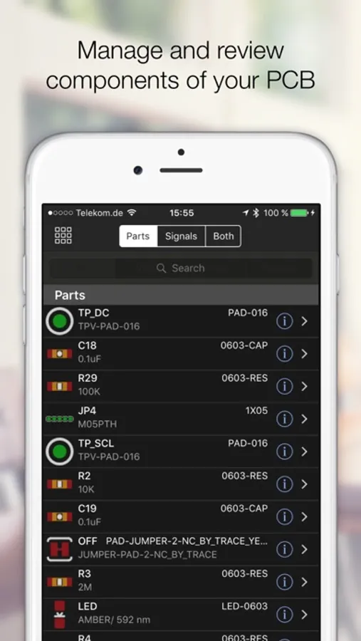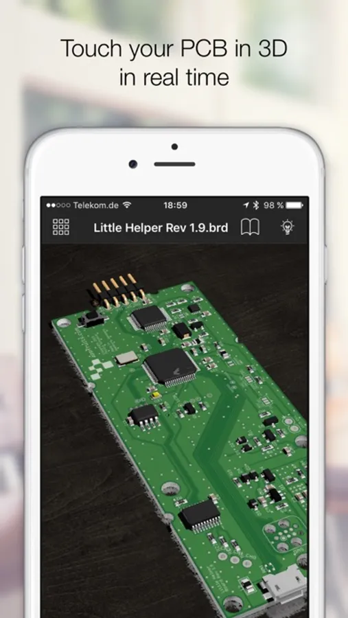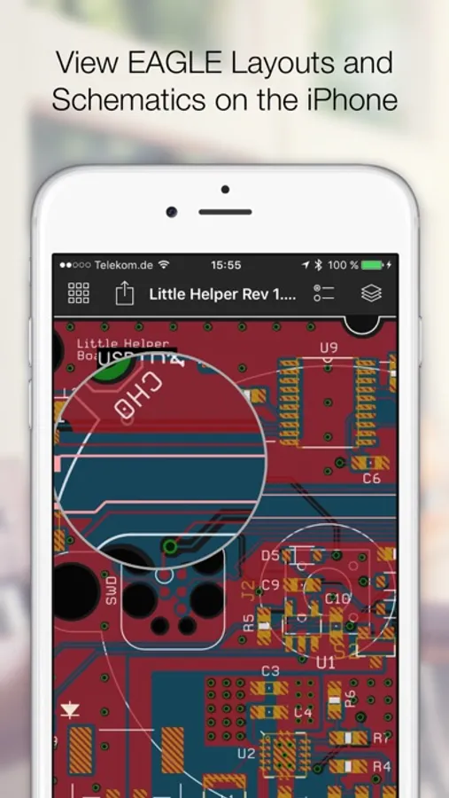 Open any EAGLE CAD file (from version 6 and above) directly on your iPhone and investigate the PCB layout and schematics with your finger. Select parts and signals, manage parts and Bill of Materials.