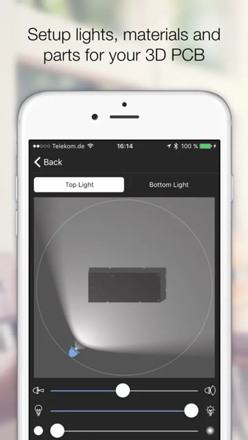 Copper creates 3D versions of your PCB including parts that you assign from our extensive 3D model library to your footprints. Copper then renders a photorealistic representation in real time that you can touch, rotate and move in a virtual studio. Setup lights and materials like the solder mask or the floor.