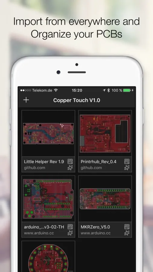 Import EAGLE files from any source like the web (just download a ZIP file with EAGLE files), from Github, your Dropbox, or send PCB files directly via Airdrop, Mail or iMessage to your iPhone or iPad.