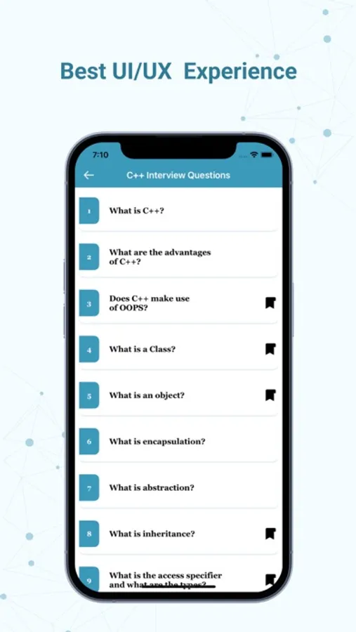 • The C++ interview questions app has a very user-friendly interface. You just have to open the app and select any topic you want to learn about, and all the answers will be displayed.