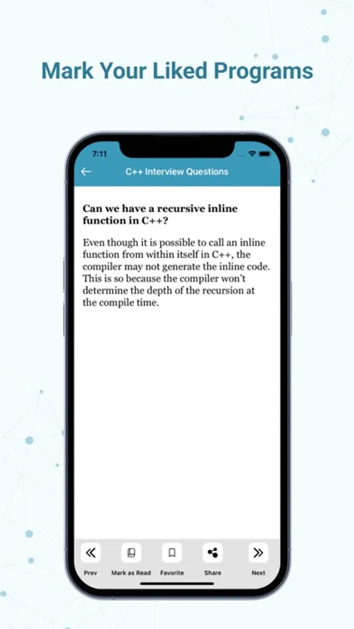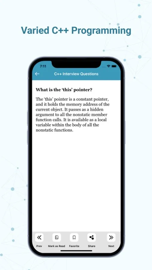 The C++ Programming Interview Questions app will teach you all C++ Programming- related stuff with questions and answers and help you crack all interview questions regarding C++ Programming language.
