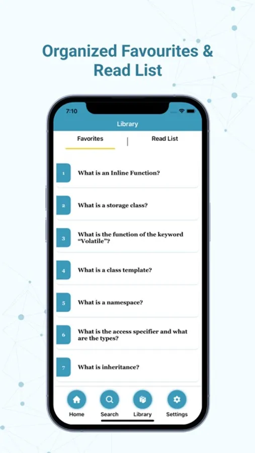 • The app has a separate folder called "Library”, which can be used as a personal reading list of topics you wish to learn in the future and can also add to favourites any topic you enjoyed and loved learning.